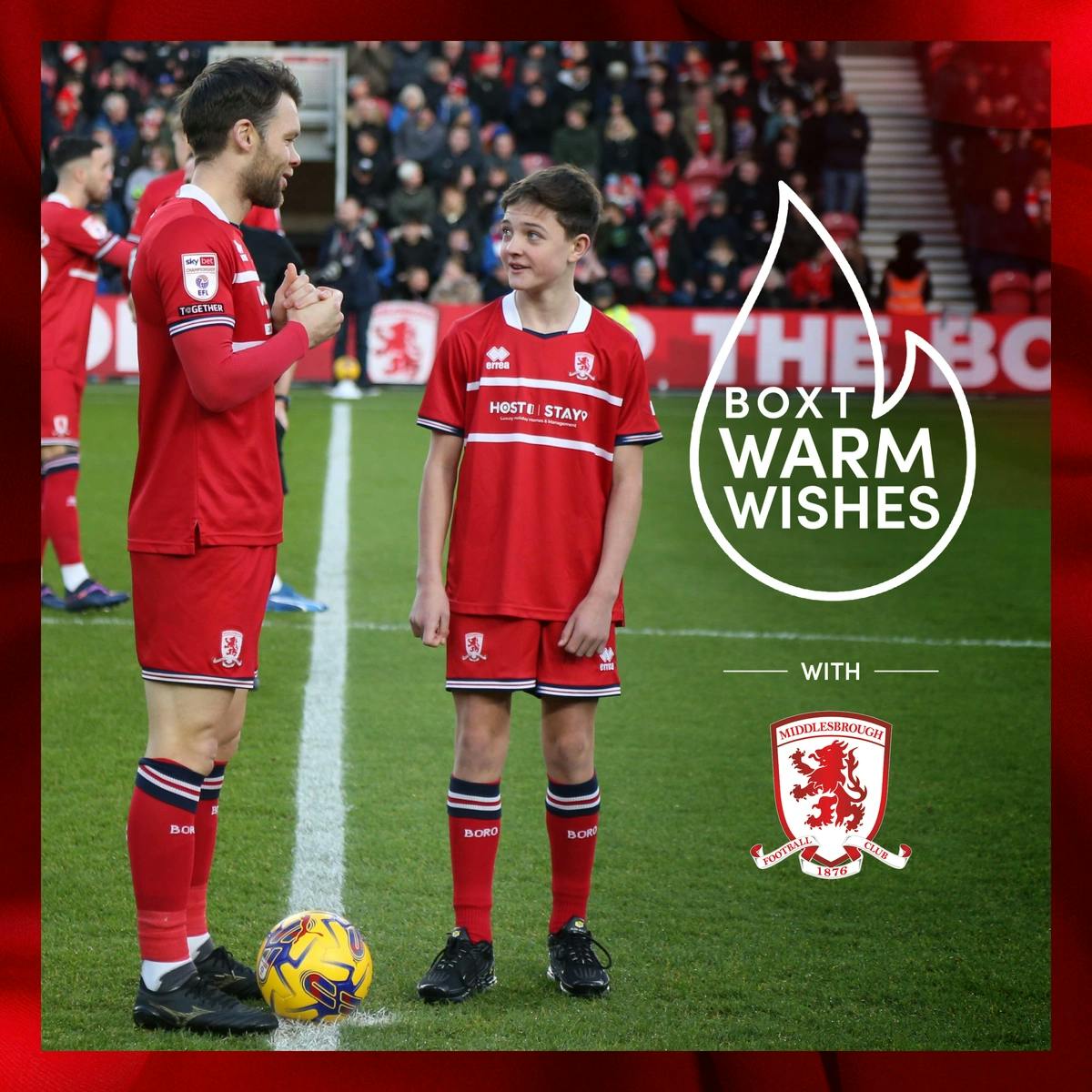 These Terms and Conditions govern the Warm Wishes Campaign ("Campaign") conducted by BOXT Limited (company number 08086606) of 3320 Century Way, Thorpe Park, Colton, Leeds, LS15 8ZB ("BOXT") in partnership with Middlesbrough Football Club (company number 01947851) of Riverside Stadium, Middlesbrough, TS3 6RS ("Middlesbrough FC"). By participating in the Campaign, you ("Participant") agree to be bound by these Terms and Conditions.
