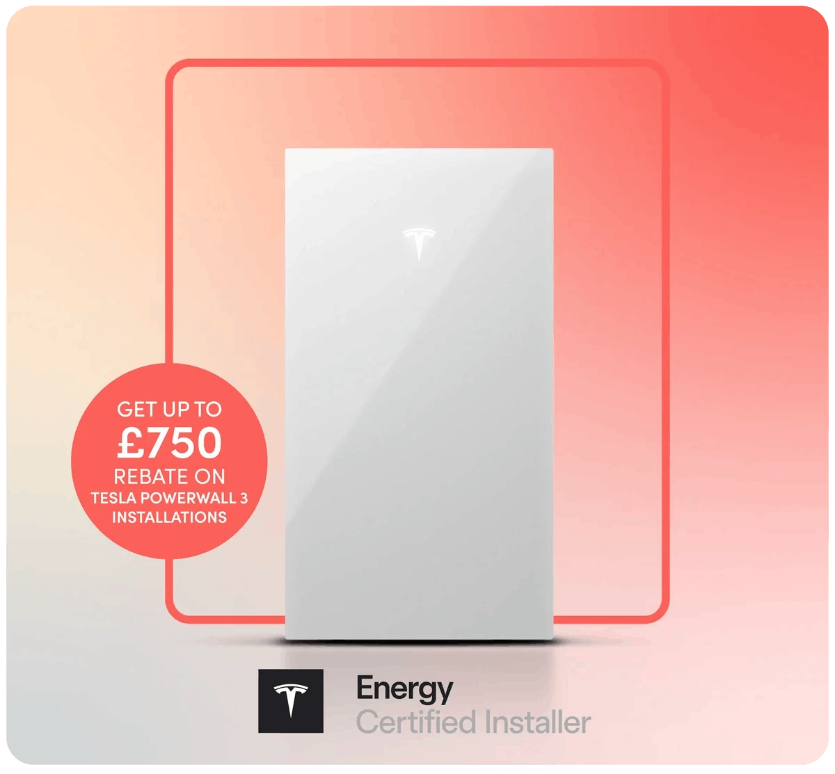 **0% interest finance available on solar panel and battery storage packages that include a Tesla Powerwall 3. Finance available subject to status.