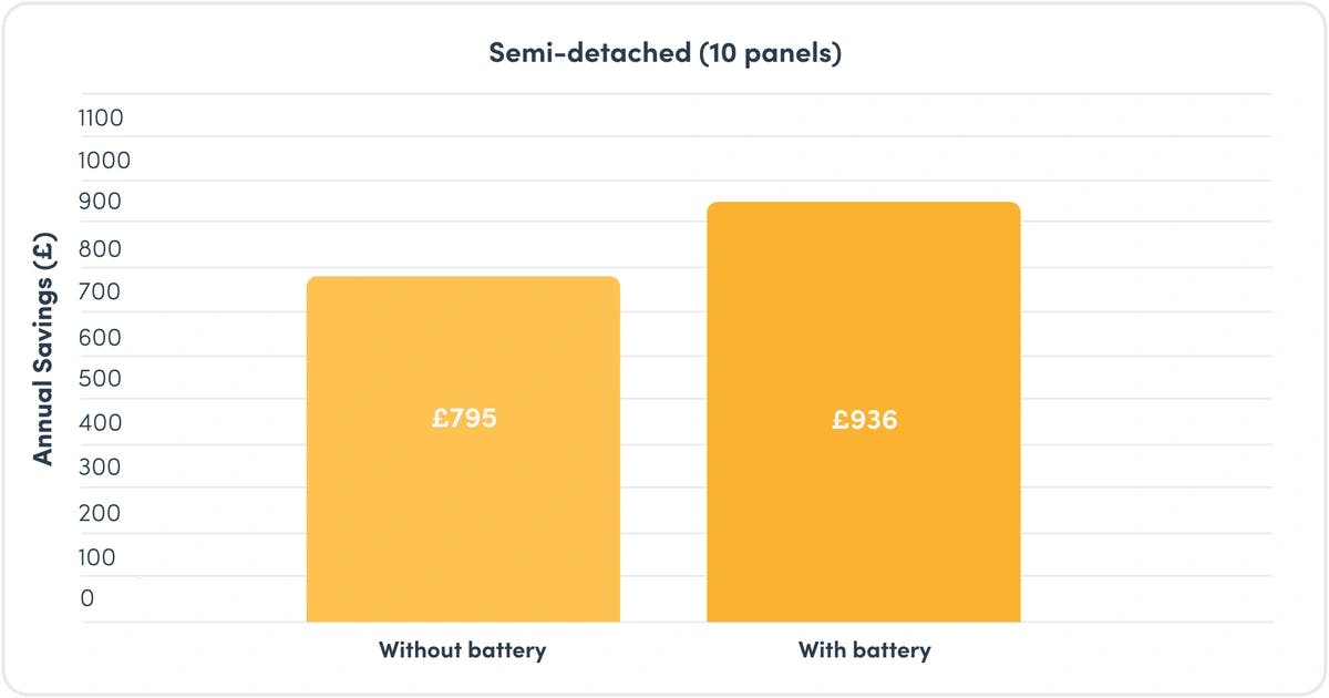 Keep reading to find out more about the potential savings for different home types, with and without battery storage.